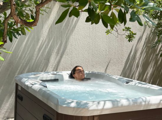 Vous pouvez paresser sur la banquette confortable à l’ombre de la pergola d’Eucalyptus ou tranquillement lire alangui dans votre “day bed by the pool” ou encore rougir de plaisir sur la terrasse surplombant le jardin avant de vous rafraîchir dans votre piscine personnelle.