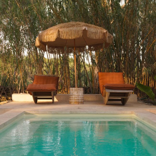 Vous pouvez paresser sur la banquette confortable à l’ombre de la pergola d’Eucalyptus ou tranquillement lire alangui dans votre “day bed by the pool” ou encore rougir de plaisir sur la terrasse surplombant le jardin avant de vous rafraîchir dans votre piscine personnelle.