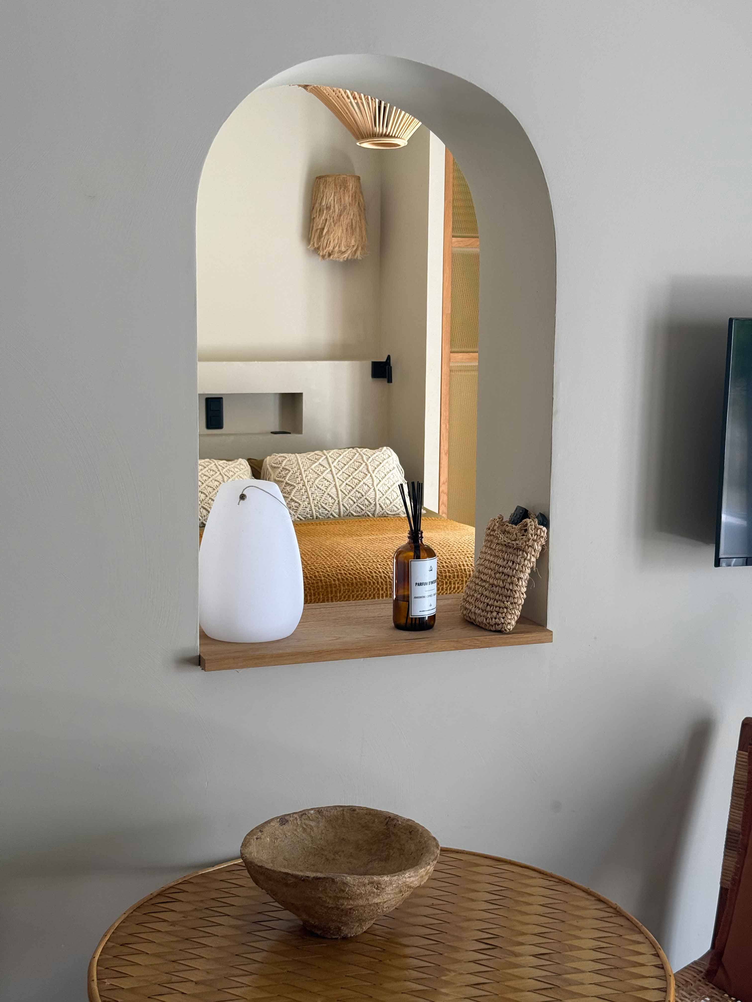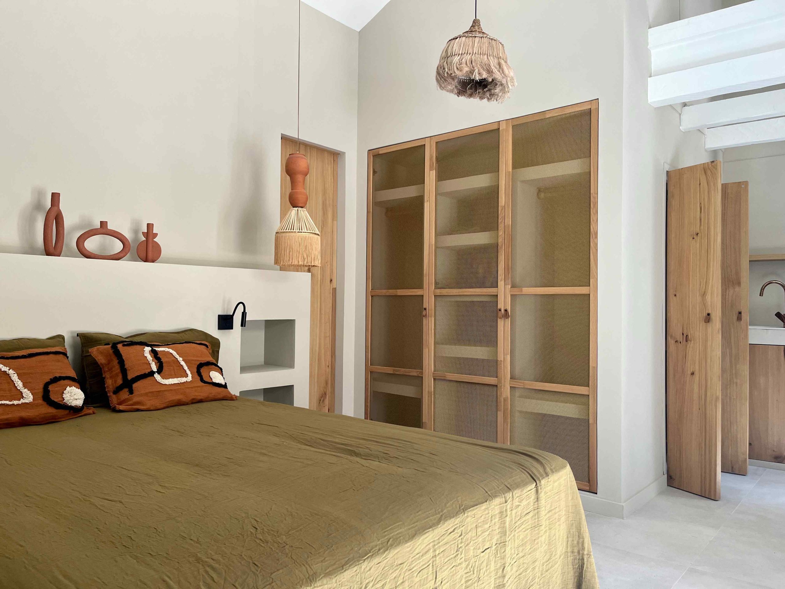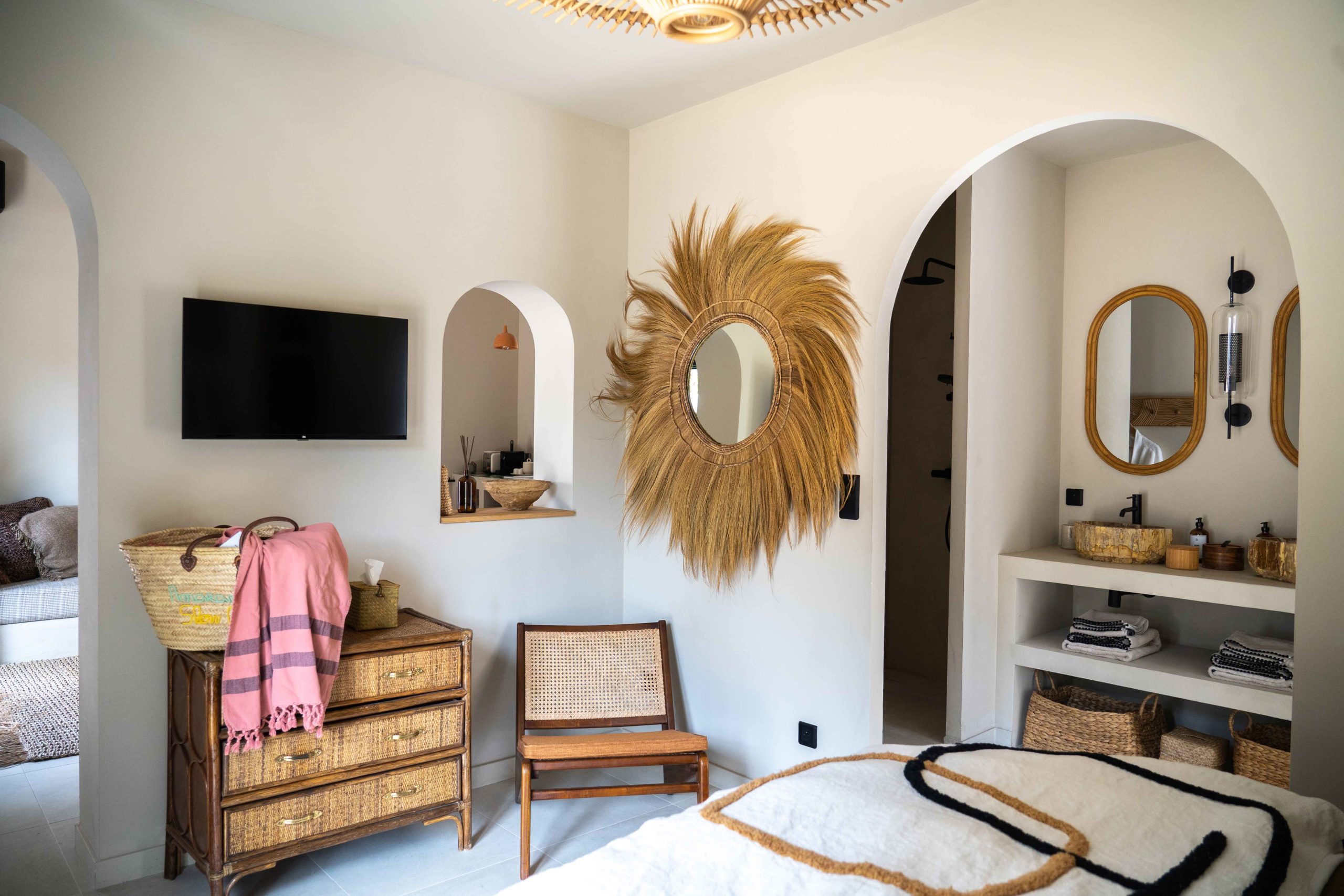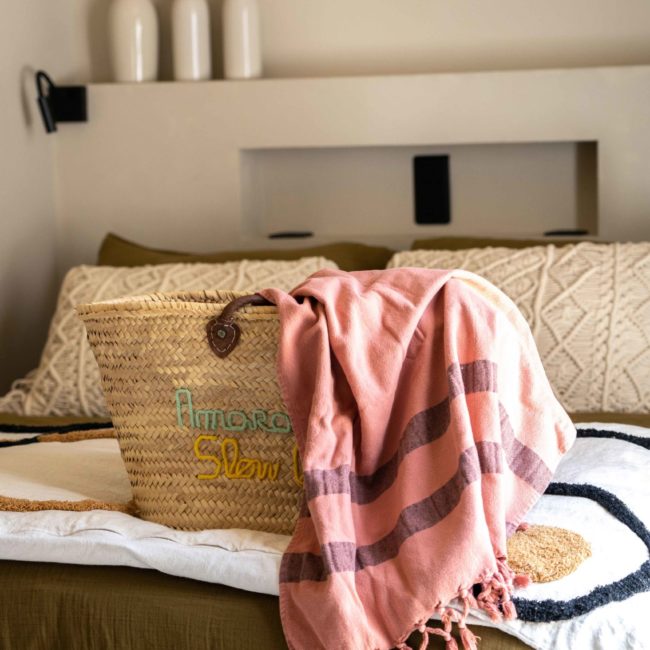 Epuré, l’intérieur vous invite au repos. Un salon cuisine, une chambre à la palette chromatique naturelle, un mobilier bohème vous permettent d’être comme chez vous mais ailleurs