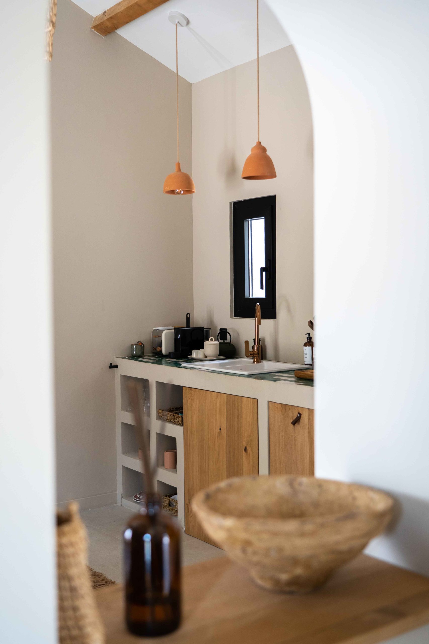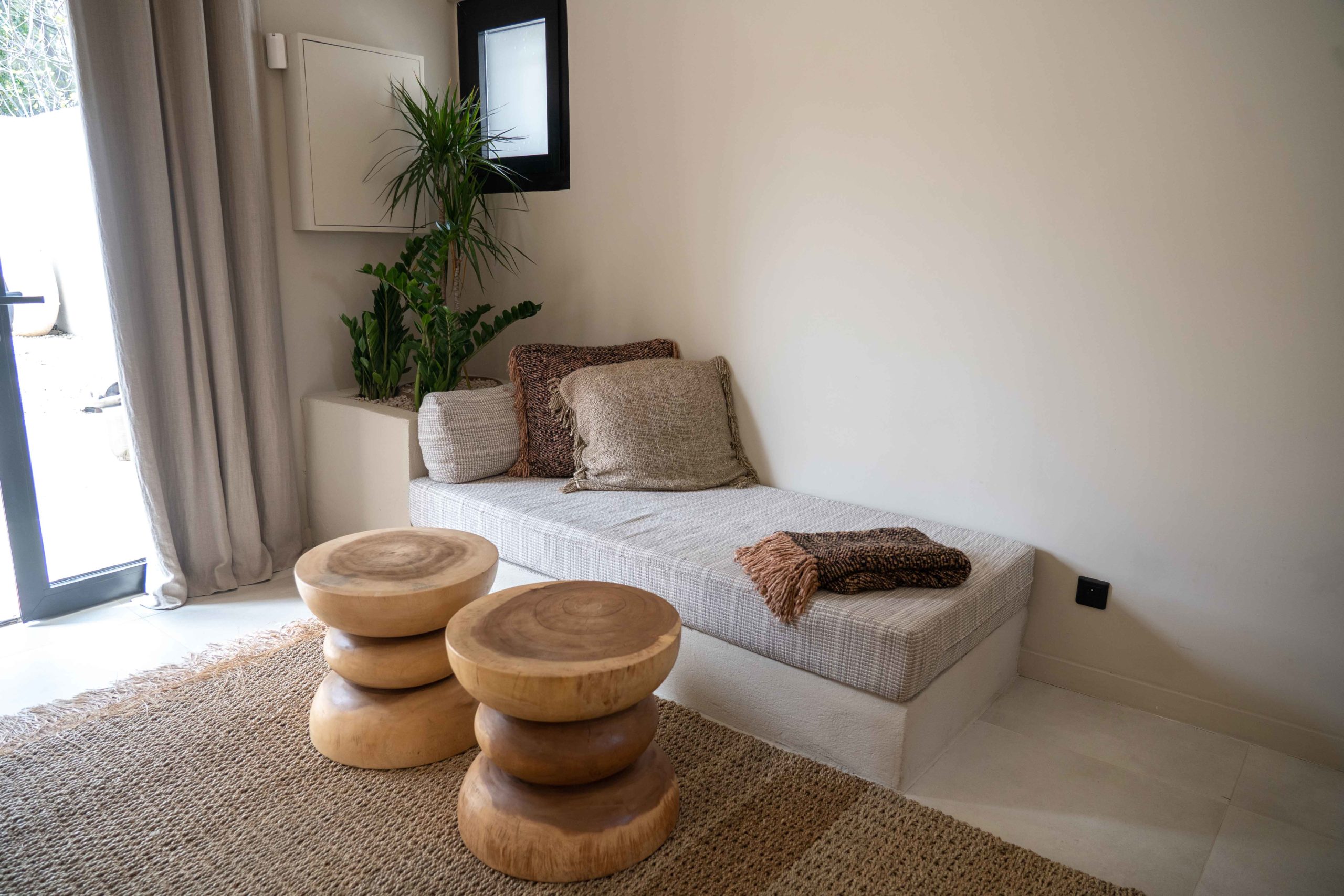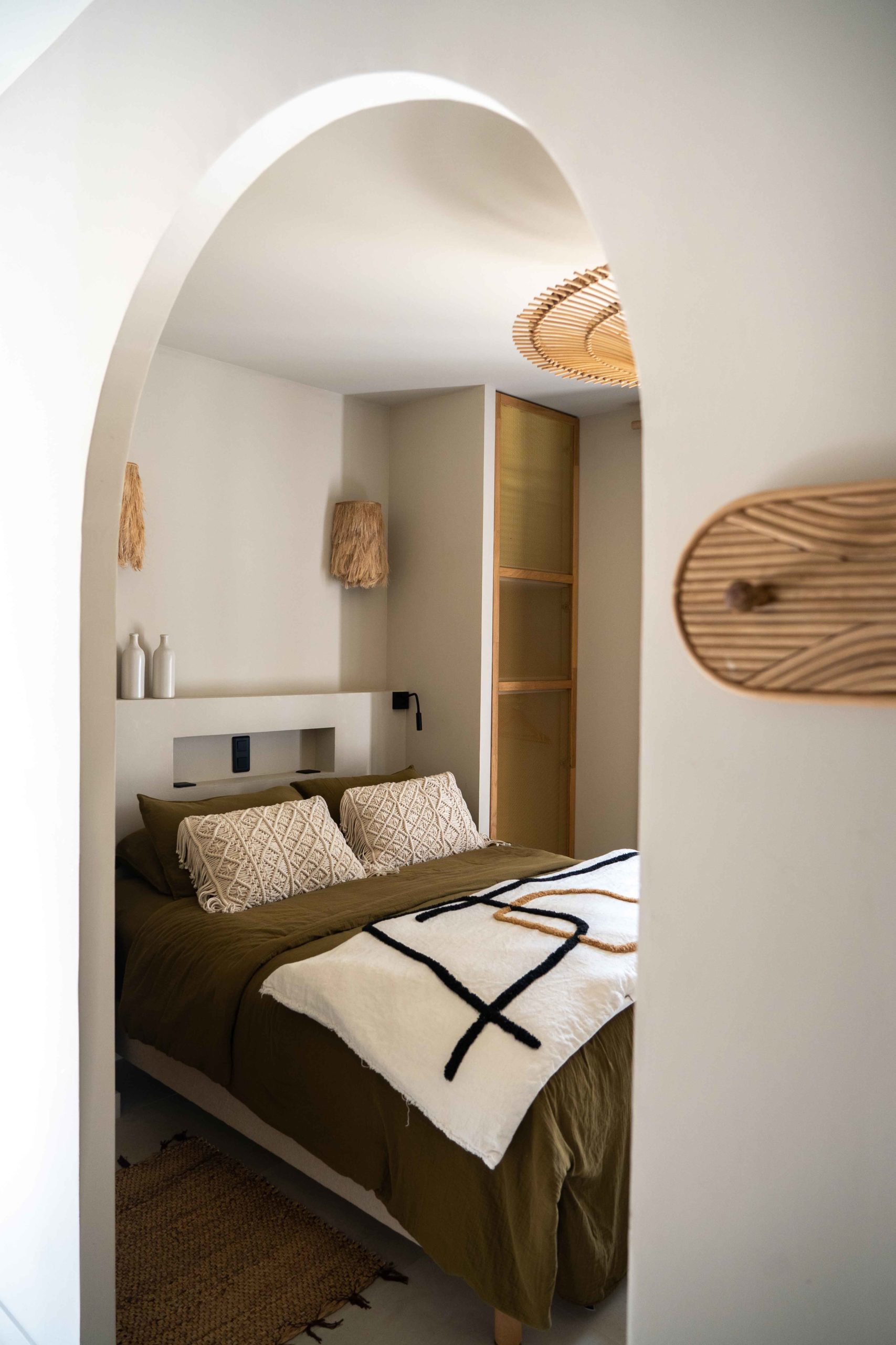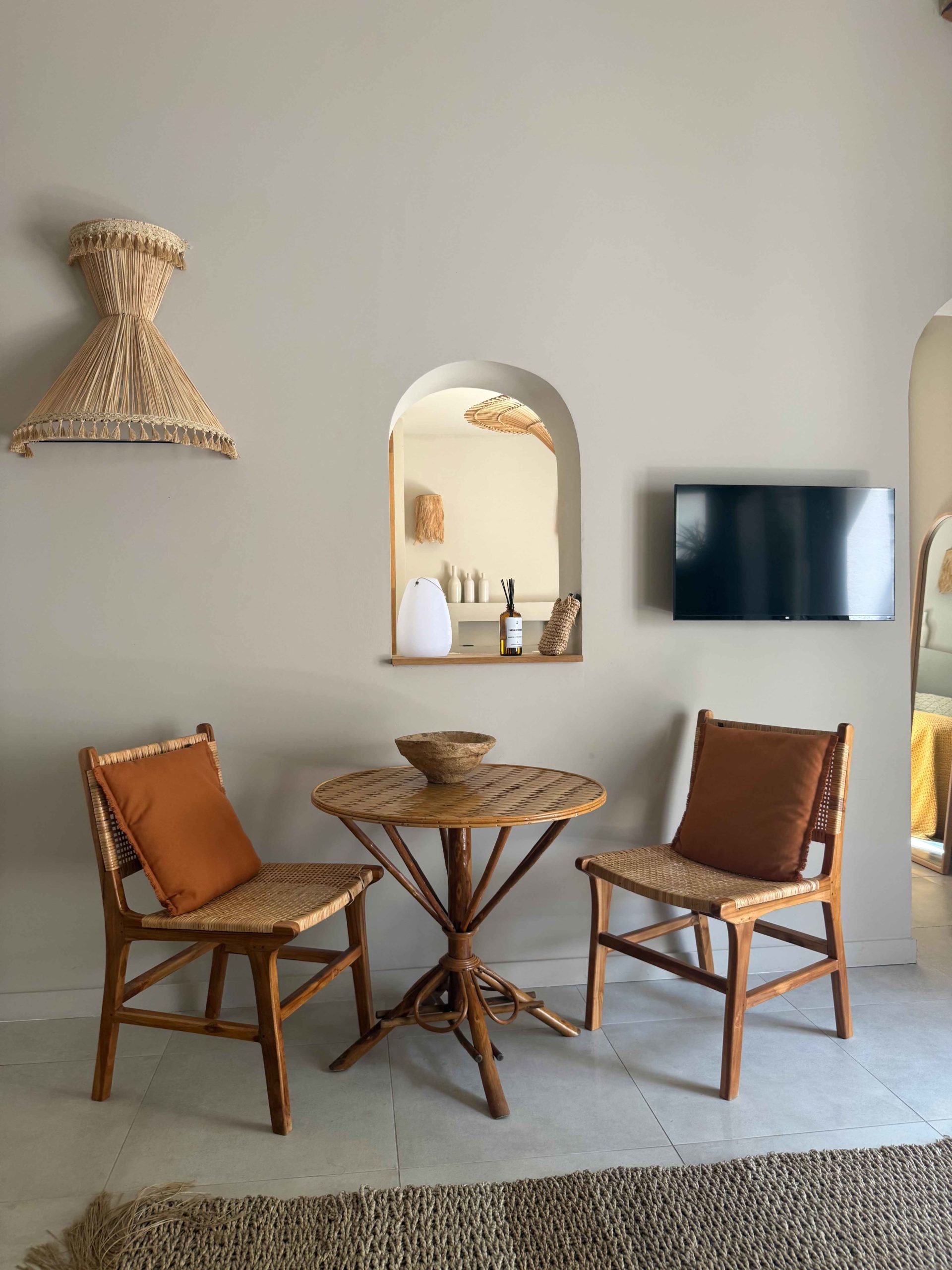 Epuré, l’intérieur vous invite au repos. Un salon cuisine, une chambre à la palette chromatique naturelle, un mobilier bohème vous permettent d’être comme chez vous mais ailleurs